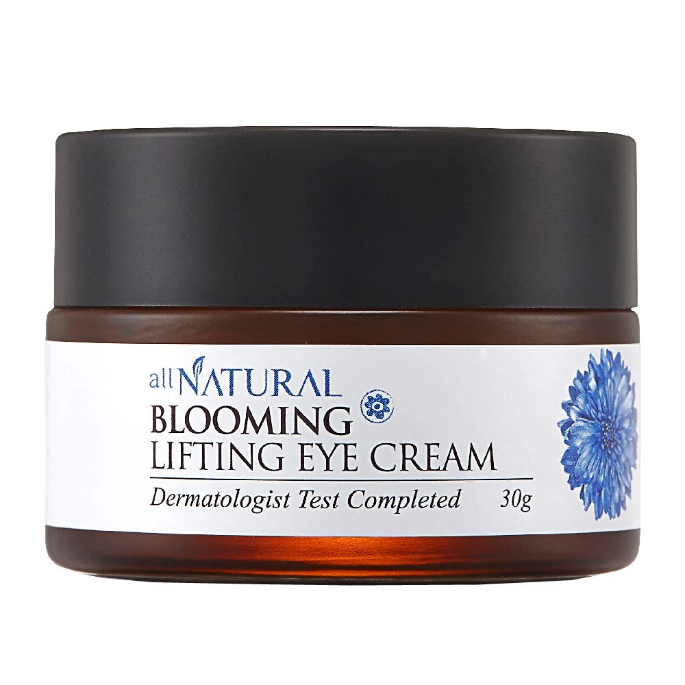 Die allNATURAL Blooming Lifting Eye Cream enthält statt normalem Wasser 52 % Kornblumenwasser, das empfindlichen Augenkonturen mit Feuchtigkeit versorgt und strafft.