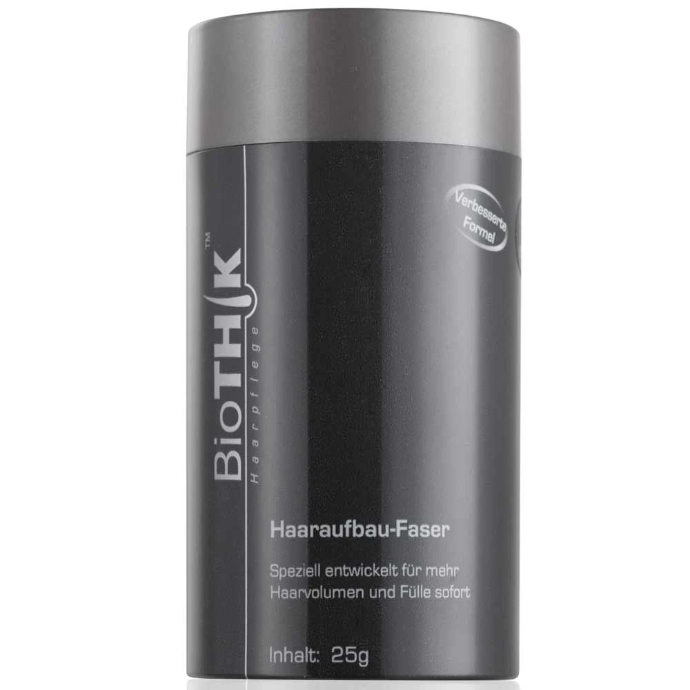 BioThik Haaraufbau-Faser bietet eine Auswahl unter 11 natürlichen Farbtönen, die zur Ihrer jeweiligen eigenen Haarfarbe passen. Für alternative Farbschattierungen können Sie die Farben auch mit dem Farbton Ihres eigenen Haars mischen. Beim Aufstreuen der Keratinfasern auf den ausgedünnten Bereich bleiben sie an Ihren vorhandenen Haaren sofort haften und erwecken den Eindruck eines kräftigeren und volleren Haars.