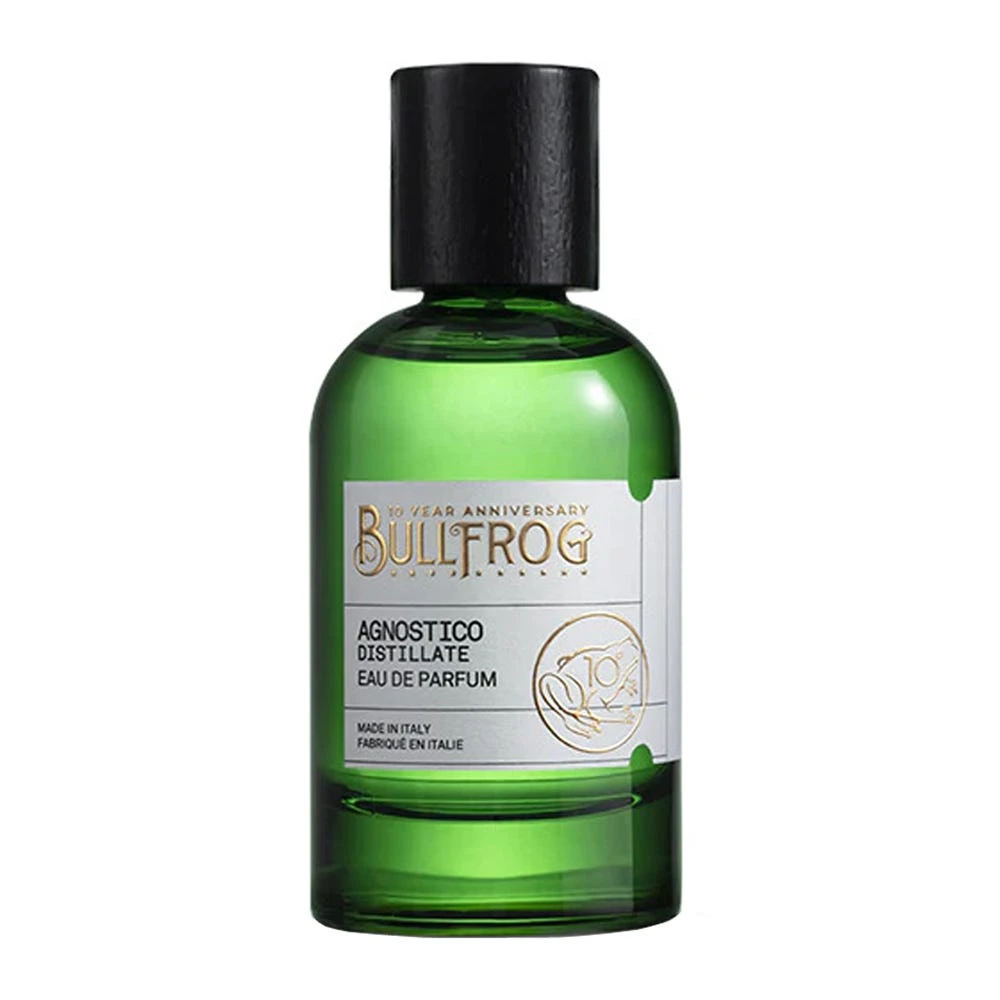 Das Bullfrog Agnostico Distillate Eau de Parfum ist eine reiche und anhaltende Duftkomposition, gekennzeichnet durch einen spritzigen und zitrusartigen Auftakt aus Zitrone, Muskatnuss und rosa Pfeffer. Sein Herz ist stürmisch und grün dank Anis, Lakritz und Bourbon-Geranie. Schließlich ist der Grundton rund, süß und zart durch die Präsenz von Patchouli, Vetiver und Tabakblättern.