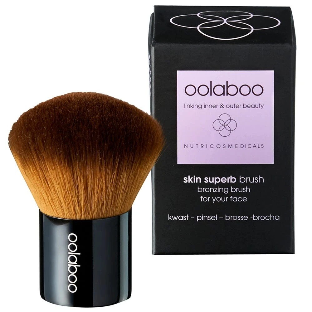Die oolaboo SKIN SUPERB bronziong brush eignet sich perfekt für die Anwendung im Gesicht des SKIN SUPERB organic spray-on bronzer.