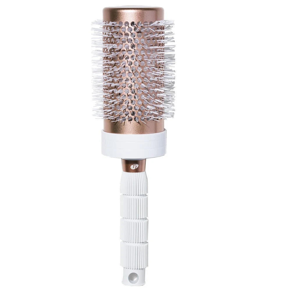Die T3 Volume 3.0 Round Brush mit luxuriösem Rotgold-Aluminium- und Keramik beschichtetem Stab sendet Wärme zum Formen des Haares beim Stylen aus, die für mehr Fülle und Volumen sorgt. Der offene Körper lässt die Luft frei strömen und garantiert für glatte, glänzende Ergebnisse. Der weiche, rutschsichere Griff bietet einen besseren Halt und müheloses Stylen. Ideal für mittellanges bis langes Haar.