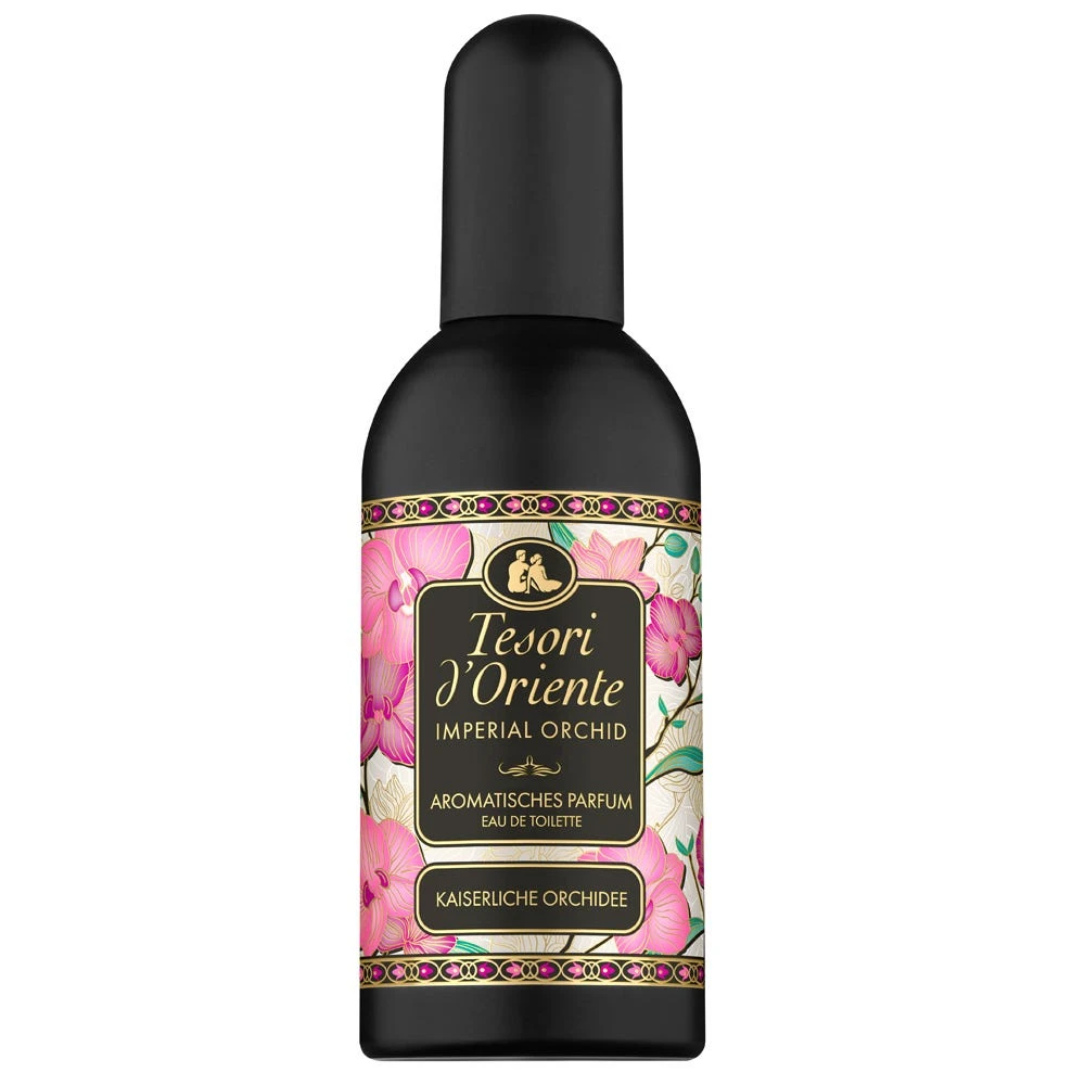 Das Tesori d´ Oriente Eau de Toilette Imperial Orchid berauscht die Sinne mit den süßen, samtigen Düften der kaiserlichen Orchidee. Seit Jahrhunderten symbolisiert die Orchidee Perfektion, Eleganz und Schönheit und gilt als die „kaiserliche Blume“. Sie steht für Perfektion, Reinheit und inneres Wachstum. Das Duftprofil aus Orange, Mandarine, Brombeere, Orchidee, Jasmin, Tiaré Blume, Orangenblüte, Sandelholz, Vanille, Musk und Myrrhe, verwöhnt die Sinne und hinterlässt ein samtig süßes Gefühl. Tauche ein in das berauschende Wellness-Ritual. Diese intensive, magnetische und sinnliche Duftkomposition verzaubert Ihre Sinne und entführt Dich in eine magische Welt der Schönheit und Harmonie. Mit der edlen Optik und dem traumhaften Duft ist dieses Eau de Toilette zudem nicht nur ein echtes Highlight im eigenen Zuhause, sondern auch eine schöne Geschenkidee, um die Liebsten gedanklich verreisen zu lassen.