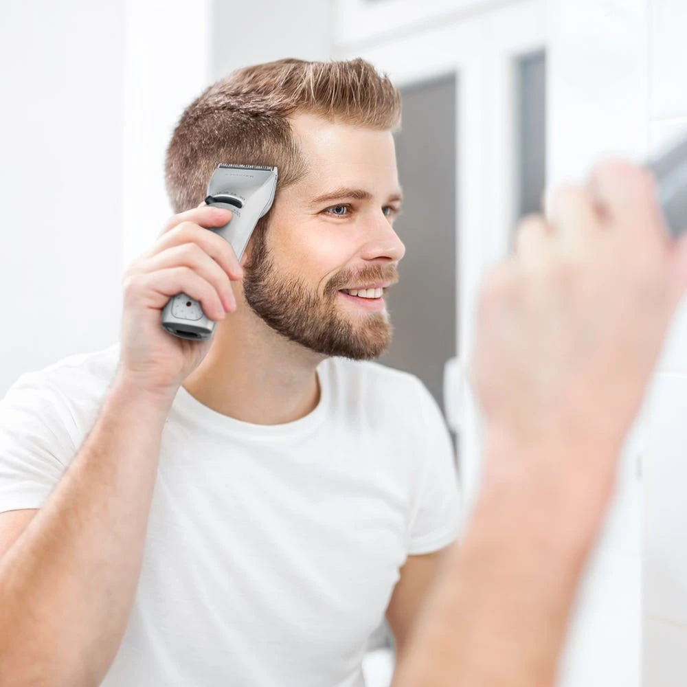 - Lieferumfang: Valera X-Master 652.03, 46 mm Klingen, fünf Aufsteckkämme (4, 8, 12, 16 und 20 mm), Reinigungspinsel und Öler, Ladestation, Adapter
